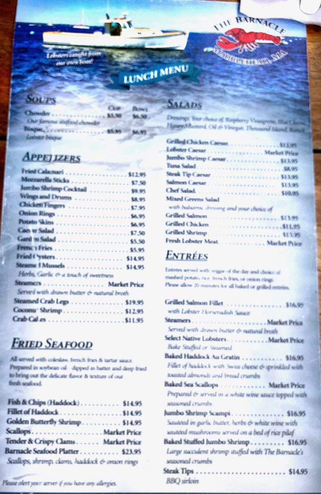 Welcome to The Barnacle Restaurant, a gem nestled on the harbor of Marblehead, MA, where the food and ambiance perfectly blend. Known for its vibrant atmosphere, this casual eatery serves up an enticing menu of burgers, bars, and seafood that leaves a lasting impression.